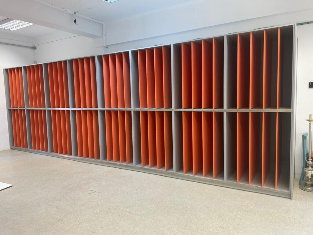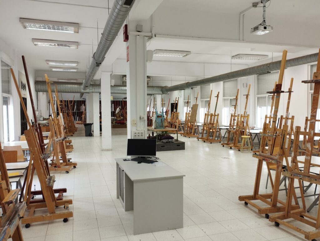Una de las carencias más notable que detectamos en el 2020 fue la falta de un equipamiento de almacenamiento y organización de los trabajos en curso. Gracias a un diseño equivalente a los muebles que dotan las aulas homólogas de las demás facultades de Bellas Artes, hemos dotado el aula de 1º con un magnífico Tablerero o peine donde tener organizados los trabajos, y así gracias a que derivamos los trabajos de modelado al ESM (P07), este aula ahora es un lugar de trabajo espacioso, organizado y eficaz.