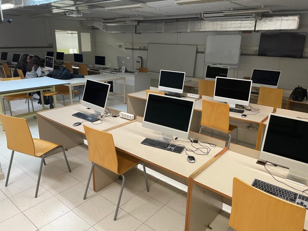 En el curso 2022/2023 se renovaron los imac que databan del año 2008 y 2010, es decir, con más de 12 años y totalmente obsoletos. En estos momentos el aula cuenta con novísimos ordenadores imac de 24″ dotados con licencias ADOBE Creative Suite.