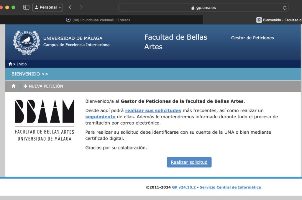 Gestor de peticiones de la Facultad de Bellas Artes.